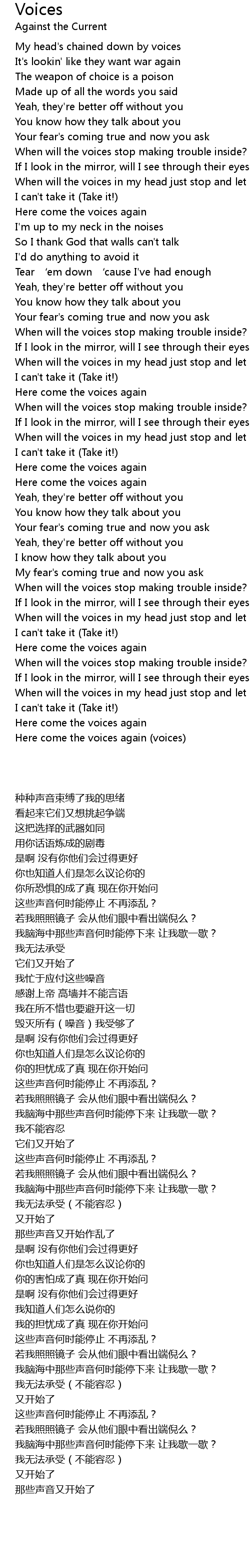 | [02:59.90] | Here come the voices again |