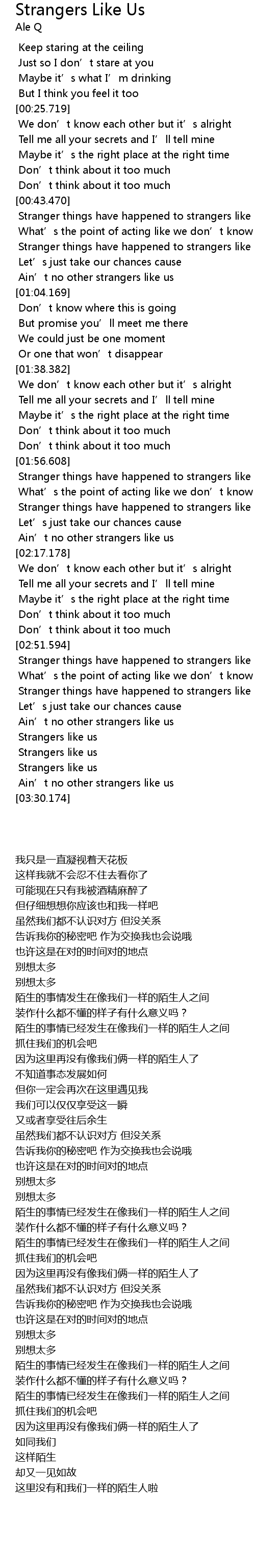 | [03:02.314] | 陌生的事情已经发生在像我们一样的陌生人之间 |