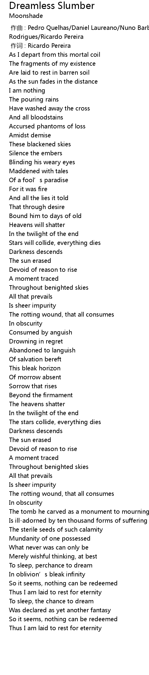 | 歌曲 | Dreamless Slumber |