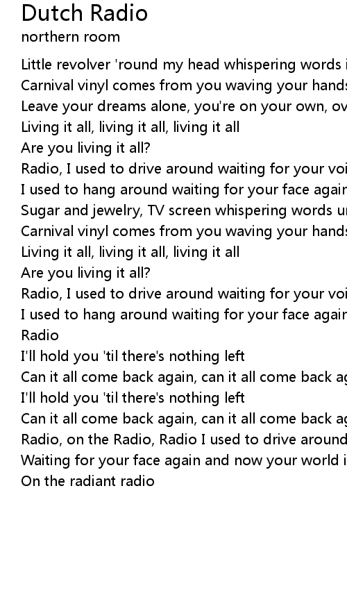 I used to hang around waiting for your face again and now your world is gone, Radio |