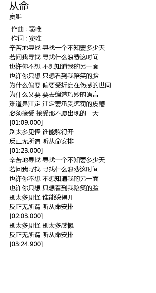 | [03:16.900] | 反正无所谓 听从命安排 |