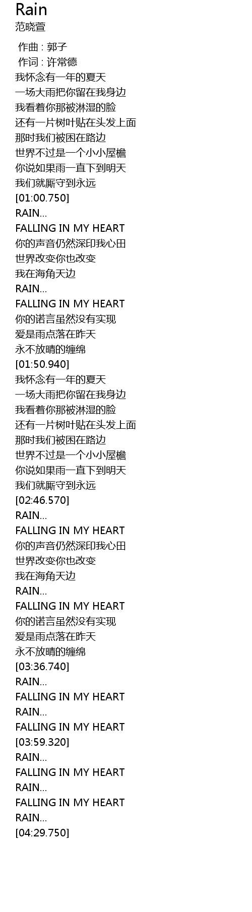 | [00:29.430] | 我看着你那被淋湿的脸 |