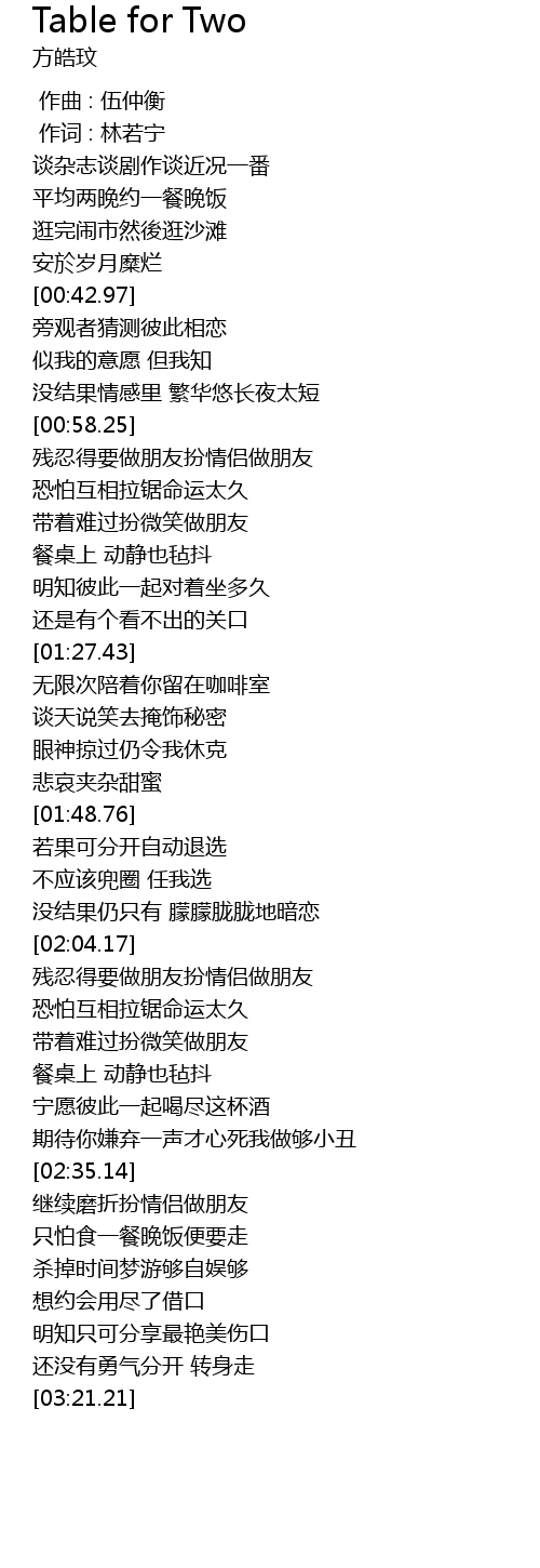 | [02:52.10] | 继续磨折扮情侣做朋友 |