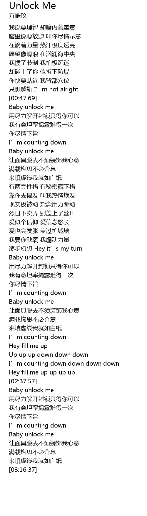 | [02:40.69] | Baby unlock me |