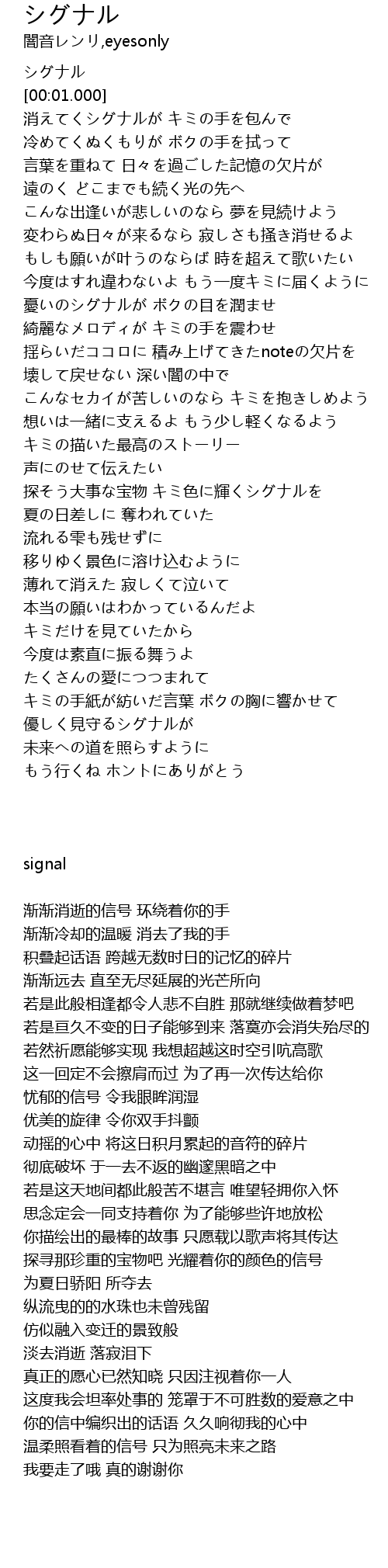 | [00:01.480] | 消えてくシグナルが キミの手を包んで |