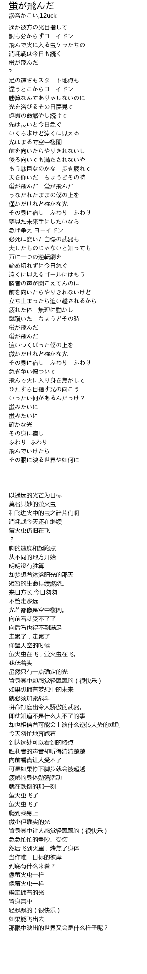 | [01:14.73] | 蛍が飛んだ 蛍が飛んだ |