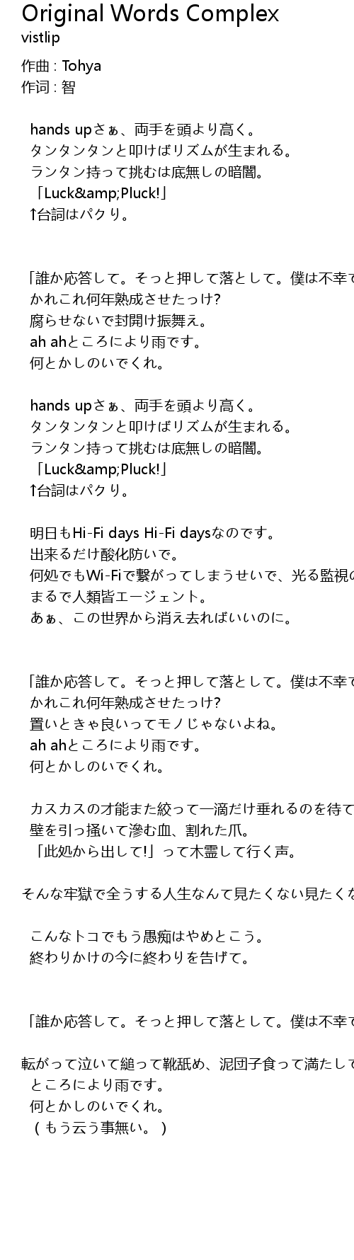 | 歌曲 | Original Words Complex |