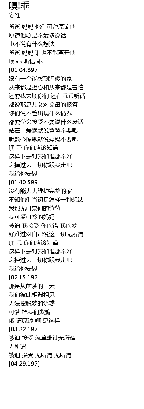 | [01:00.590] | 噢 乖 听话 乖 |