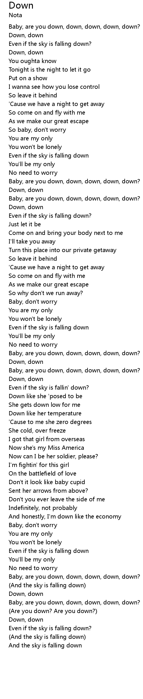 | Baby, are you down, down, down, down, down? | |