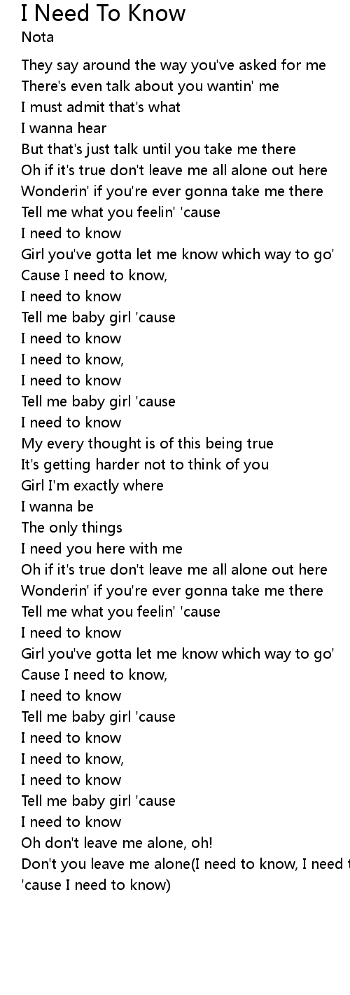 | Don't you leave me alone(I need to know, I need to know)(Tell me baby girl 'cause I need to know) |