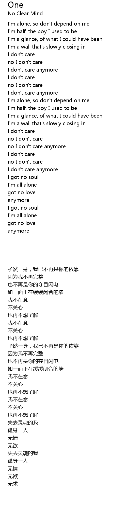 I'm alone, so don't depend on me |