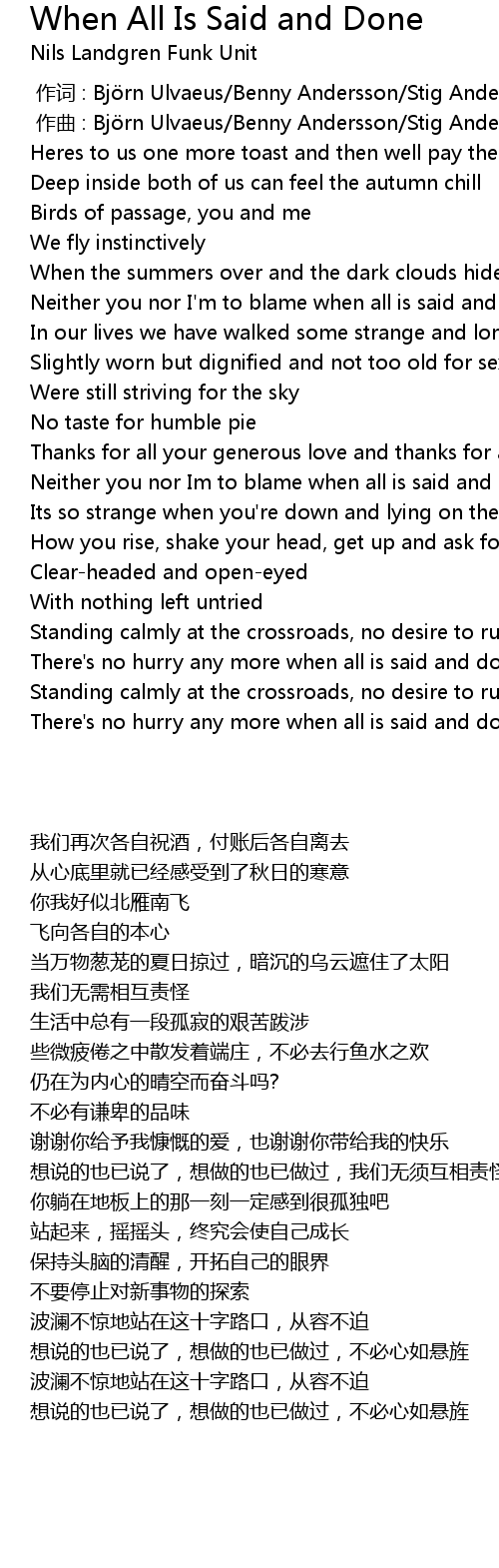 | [02:53.36] | There's no hurry any more when all is said and done |