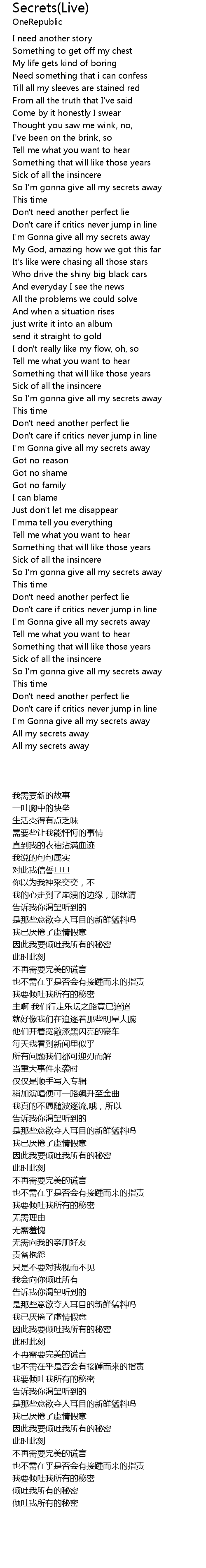 | [02:46.107] | 我要倾吐我所有的秘密 |