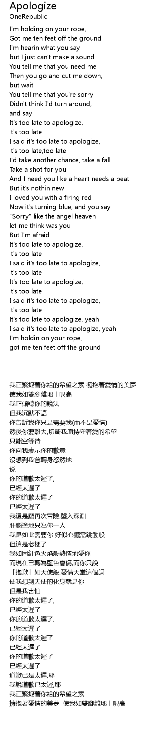 I said it's too late to apologize, yeah |