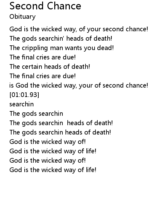 God is the wicked way, of your second chance! |