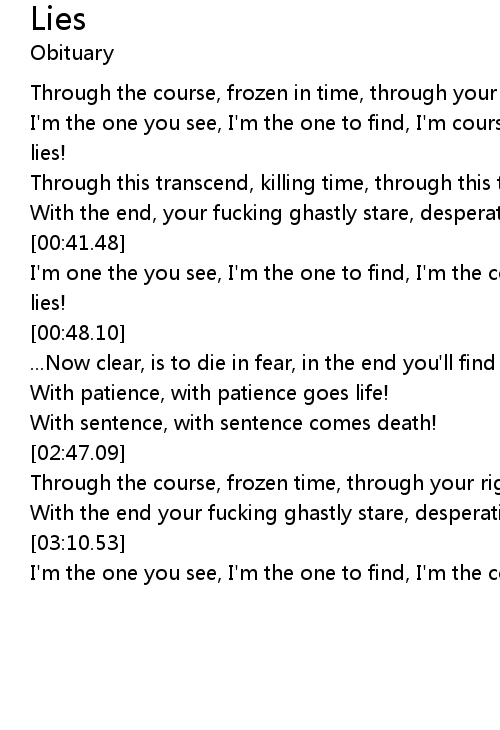 ...Now clear, is to die in fear, in the end you'll find lies! |