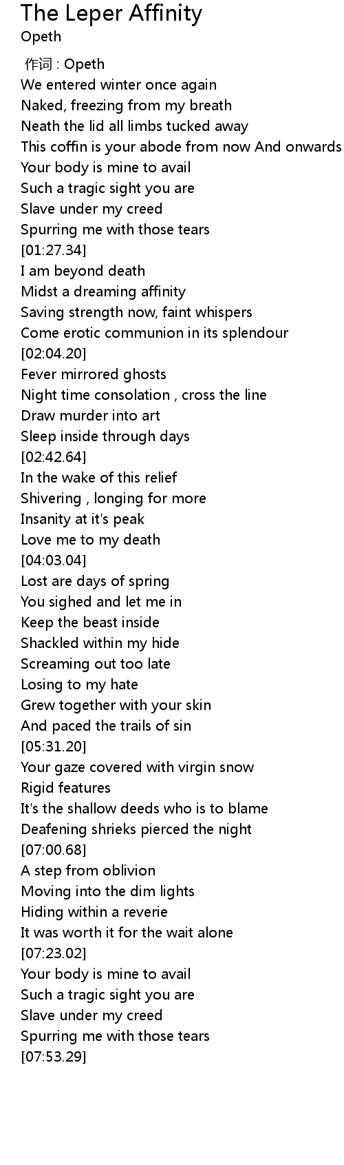 | 歌曲 | The Leper Affinity |