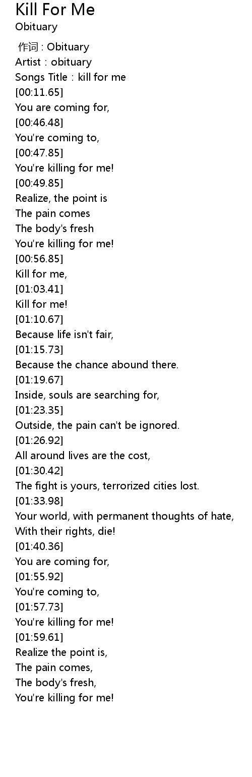 | [00:09.52] | Songs Title:kill for me |