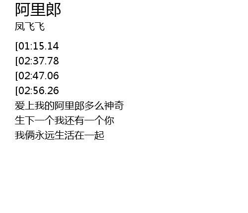 | [00:20.17][01:15.14][02:28.66] | a li lang, a li lang, a la li you |