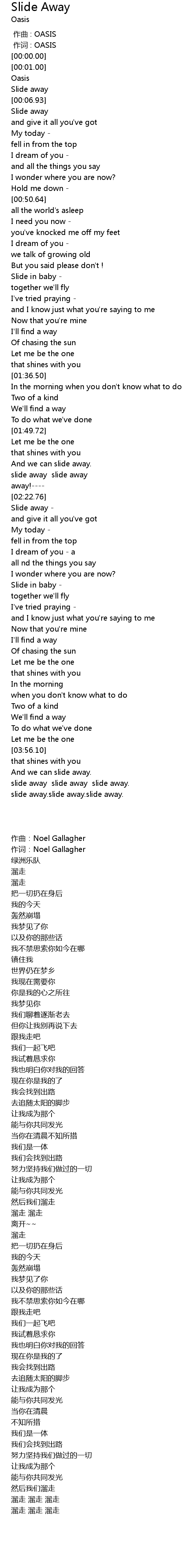 | [00:00.00] | 作曲:Noel Gallagher |