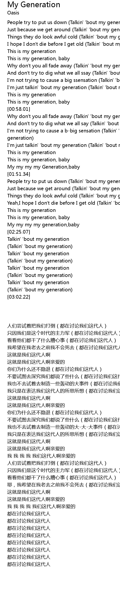 Yeah,I hope I don't die before I get old (Talkin' 'bout my generation) |