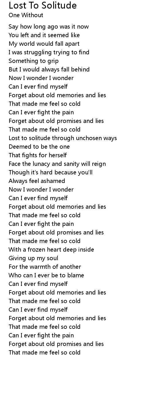Lost to solitude through unchosen ways |
