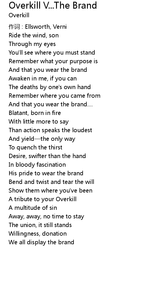 | 歌曲 | Overkill V...The Brand |