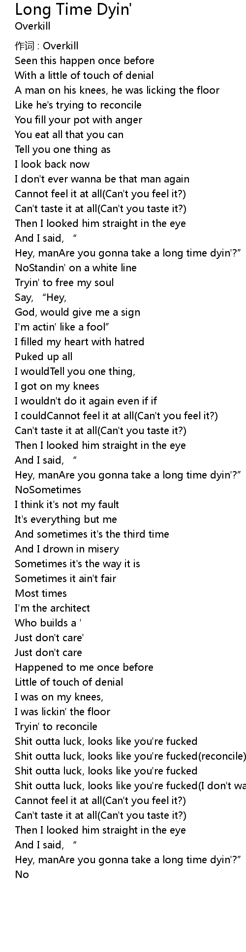 | Hey, manAre you gonna take a long time dyin'?" | |