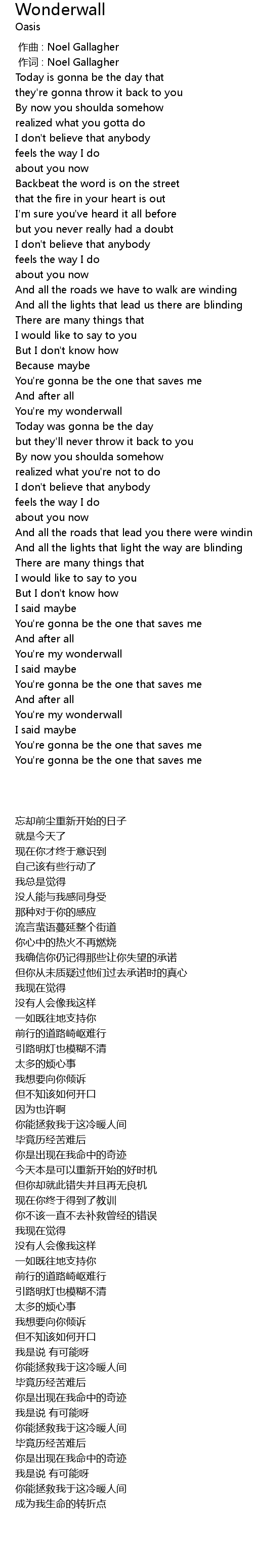 | [00:00.00] | 作曲 : Noel Gallagher |