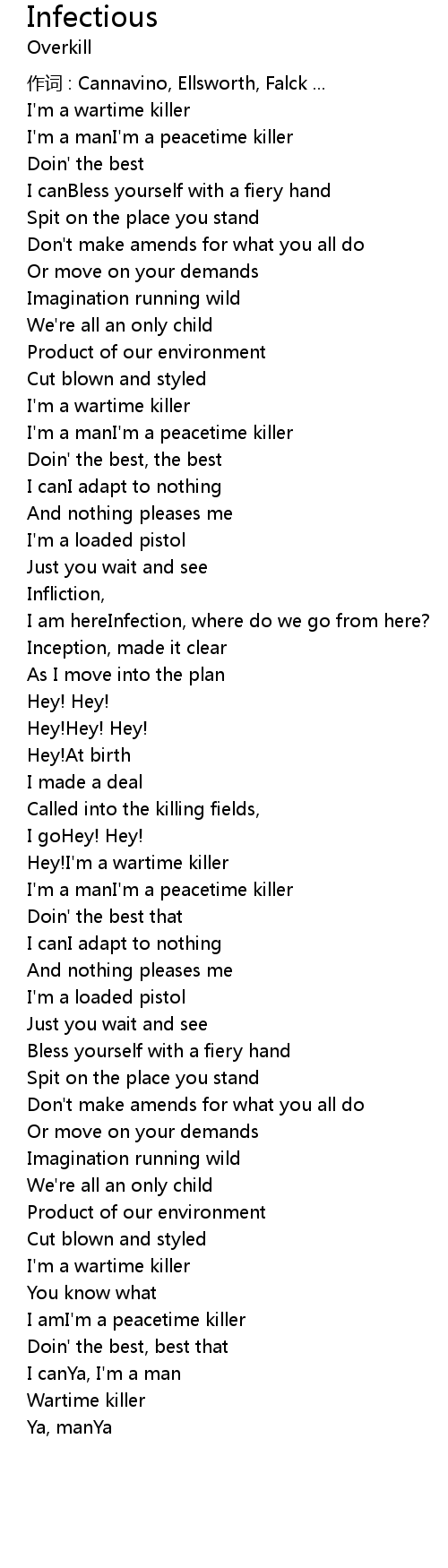 | I amI'm a peacetime killer | |
