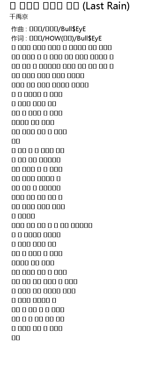 | [00:01.000] | 作词 : 천우경/HOW(하우)/Bull$EyE |