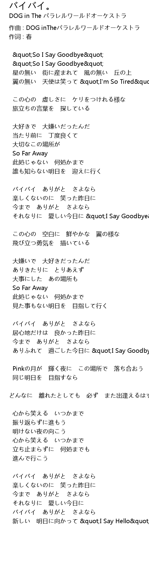 | 歌曲 | バイバイ。 |
