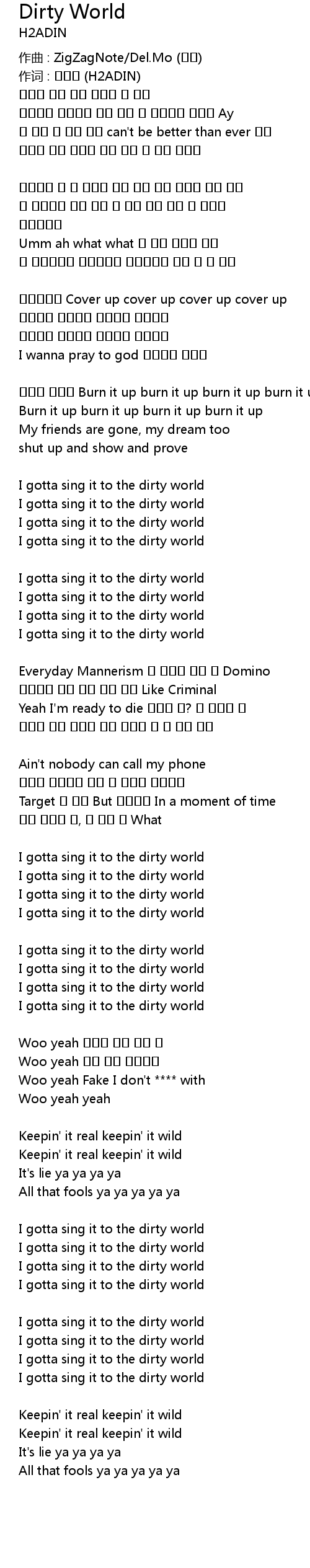 | I gotta sing it to the dirty world | |