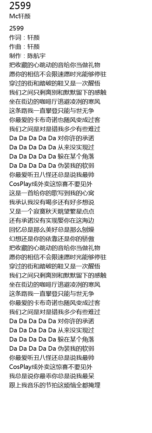 | Da Da Da Da Da 从来没实现过 | |