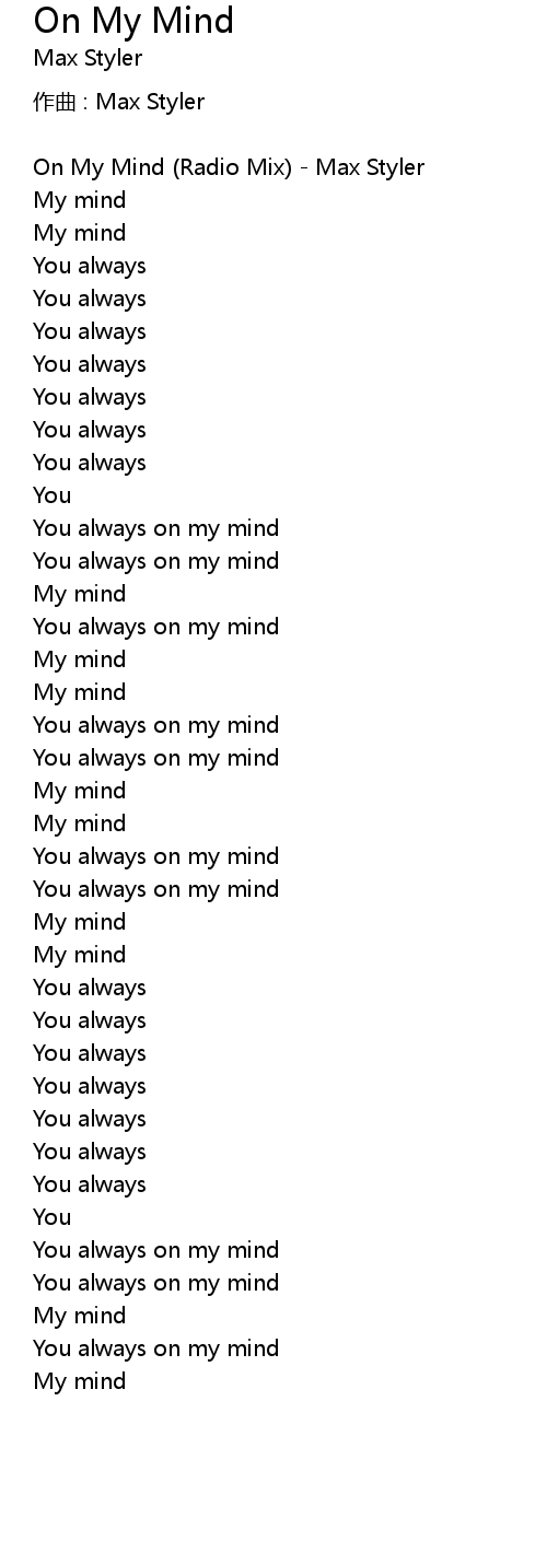 | On My Mind Radio Mix Max Styler | |