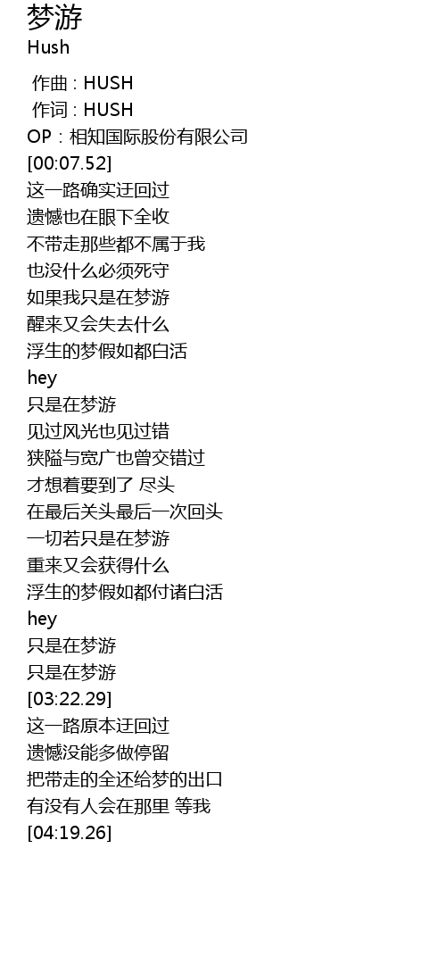 | [02:59.91] | zhǐ shì zài mèng yóu |