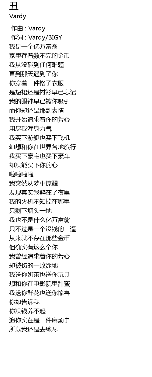 | [00:01.62] | wǒ shì yí gè yì wàn fù wēng |