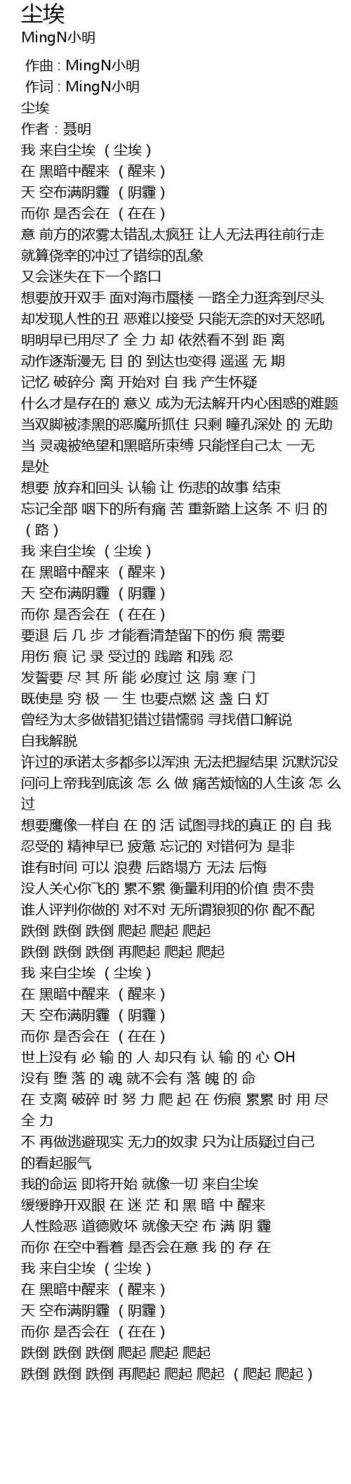 | [00:01.500] | 我 来自尘埃 (尘埃) |