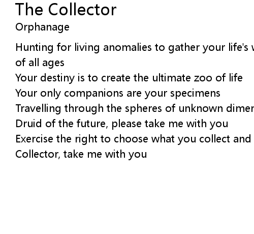 | Collector, take me with you |
