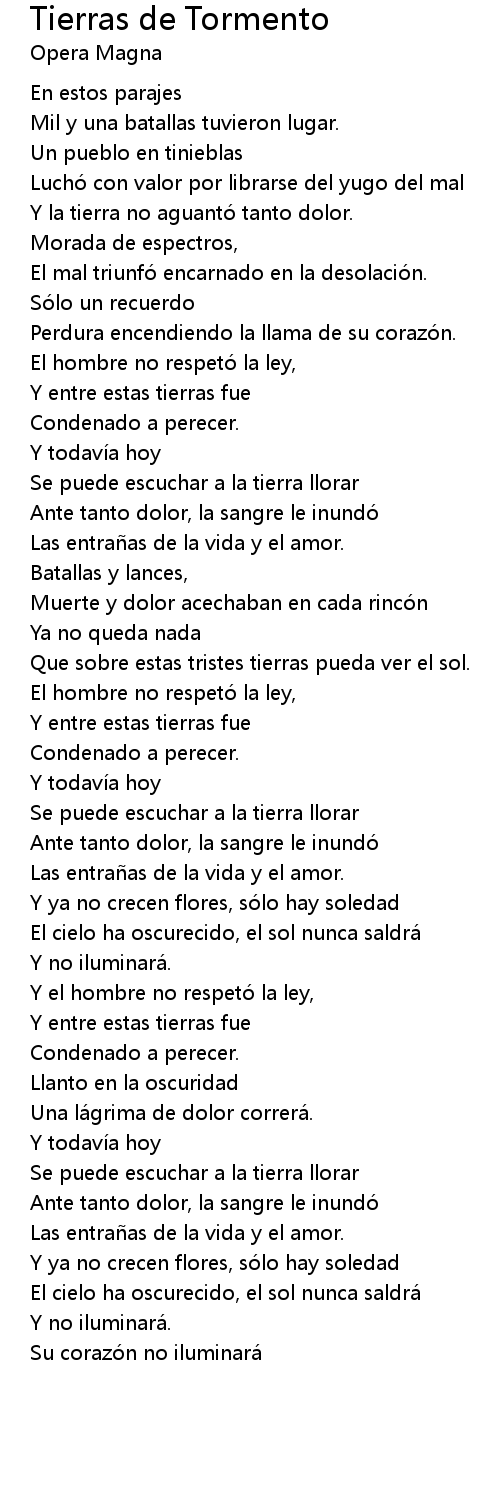 | 歌曲 | Tierras de Tormento |