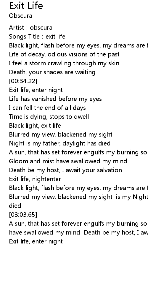 | [00:09.34] | Black light, flash before my eyes, my dreams are fading |