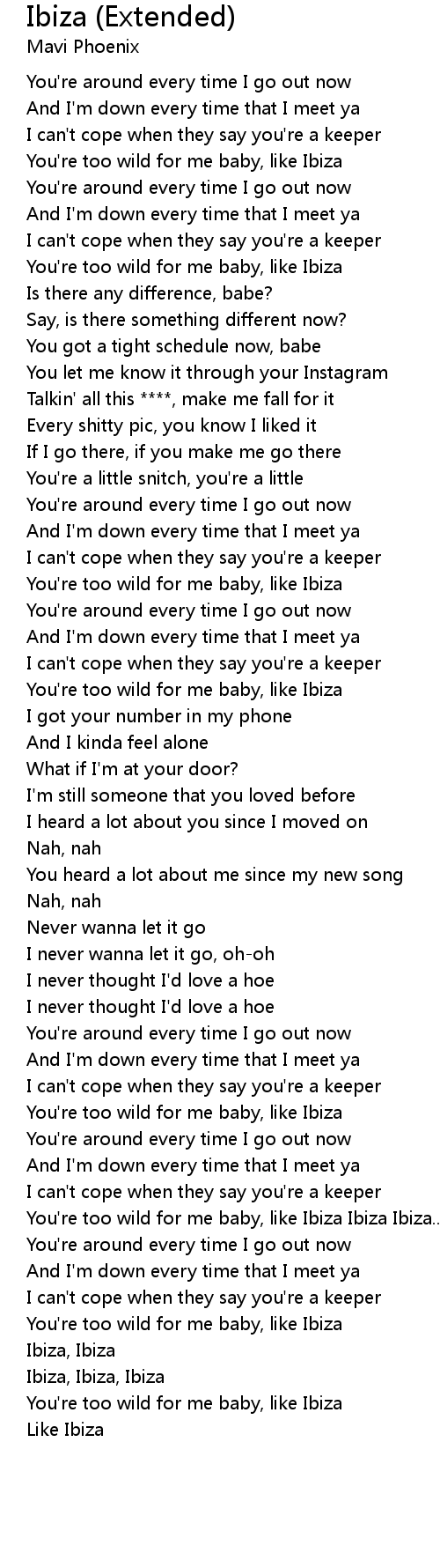 You're too wild for me baby, like Ibiza Ibiza Ibiza... |