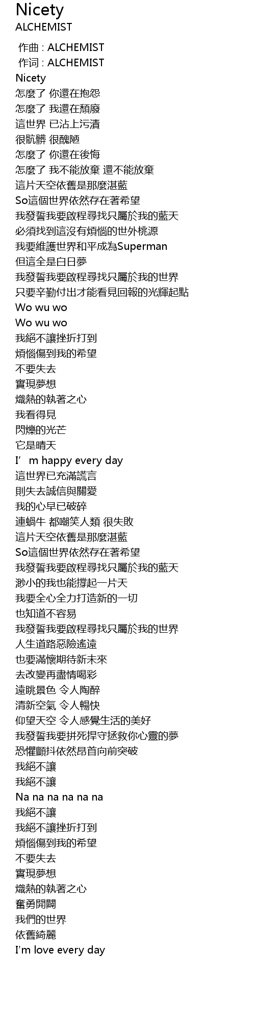 | [00:00.315] | 作词 : ALCHEMIST |