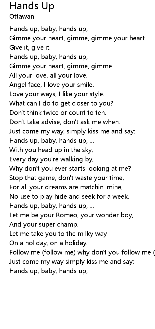 Hands up, baby, hands up, ... |