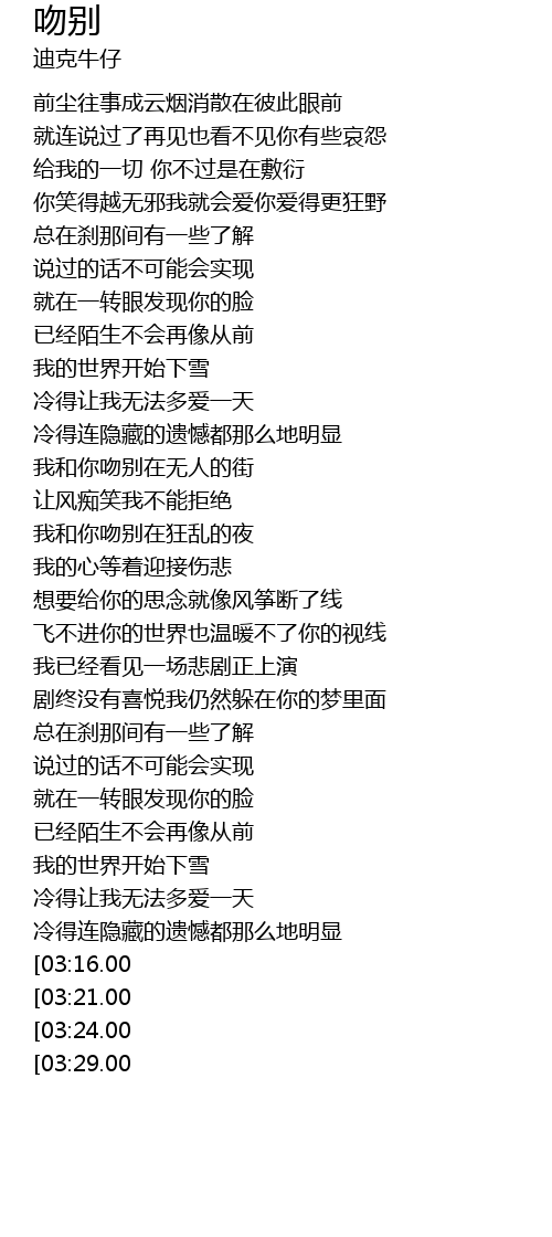 [03:36.00][03:16.00] 我和你吻别在无人的街