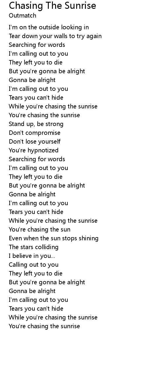 You're chasing the sun |