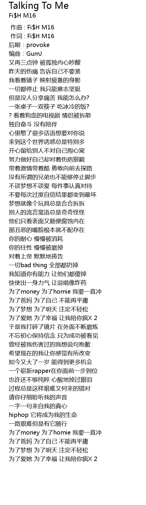 | [00:01.000] | 作词 : Fi$H M16 |