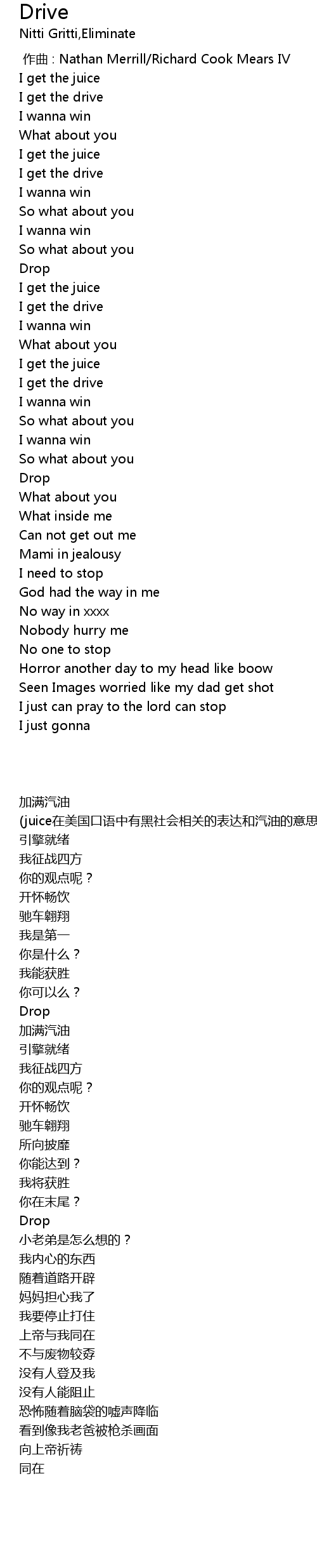 | (juice在美国口语中有黑社会相关的表达和汽油的意思等) | |