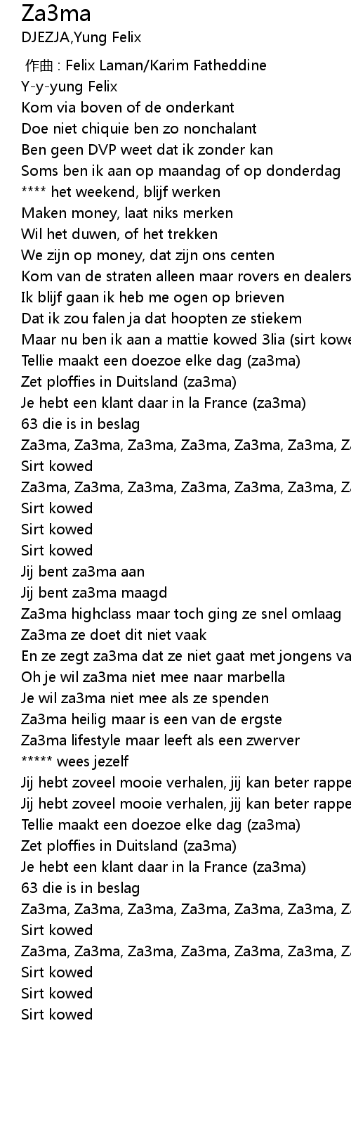 | [01:04.33] | Za3ma highclass maar toch ging ze snel omlaag |