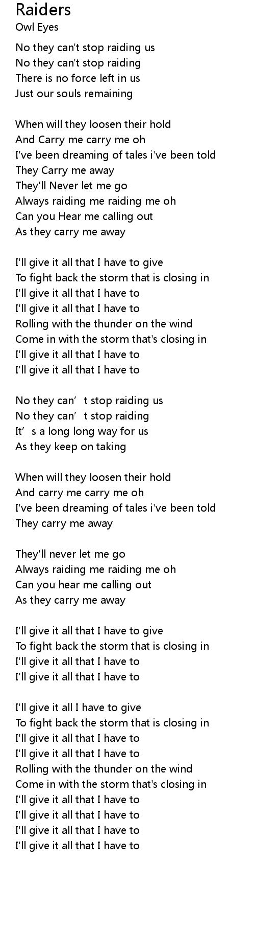 | Always raiding me raiding me oh | |
